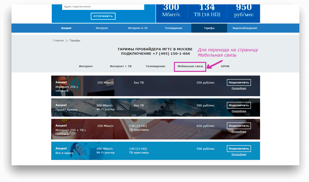 На странице сайта, посвящённой мобильной связи МТС, вы увидите действующие акции, сможете ознакомиться с их условиями, а также доступные для подключения тарифные планы. Большой выбор вариантов позволяет подобрать наиболее подходящий вам тариф за минимальную цену.